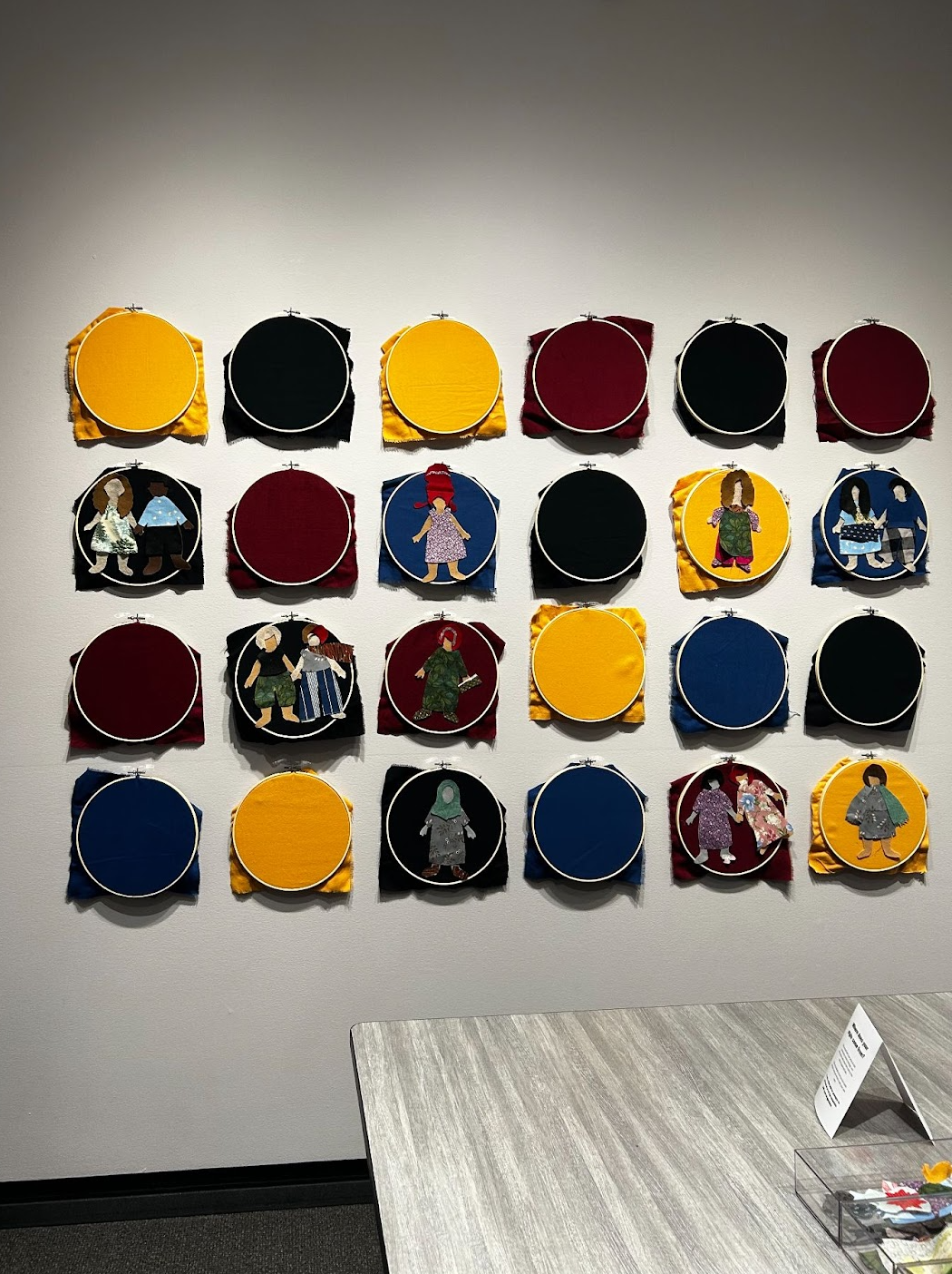 What struck me most was how immersive it felt. When I asked Tamhane what inspired her to create more accessible art, she mentioned that she “wanted to make a beautiful ornamental space for everybody because some people don’t feel comfortable going to museums.” It felt less like walking into a gallery and more like stepping into another world. The space had been completely transformed, and I could tell I wasn’t the only one taken aback: People stood under the hanging cloth, looking up, letting the colors fall around them. The exhibition’s theme, making art more accessible, suddenly felt alive in that moment. Tamhane’s art pushes out of its frame and into the room, insisting you enter and notice it.