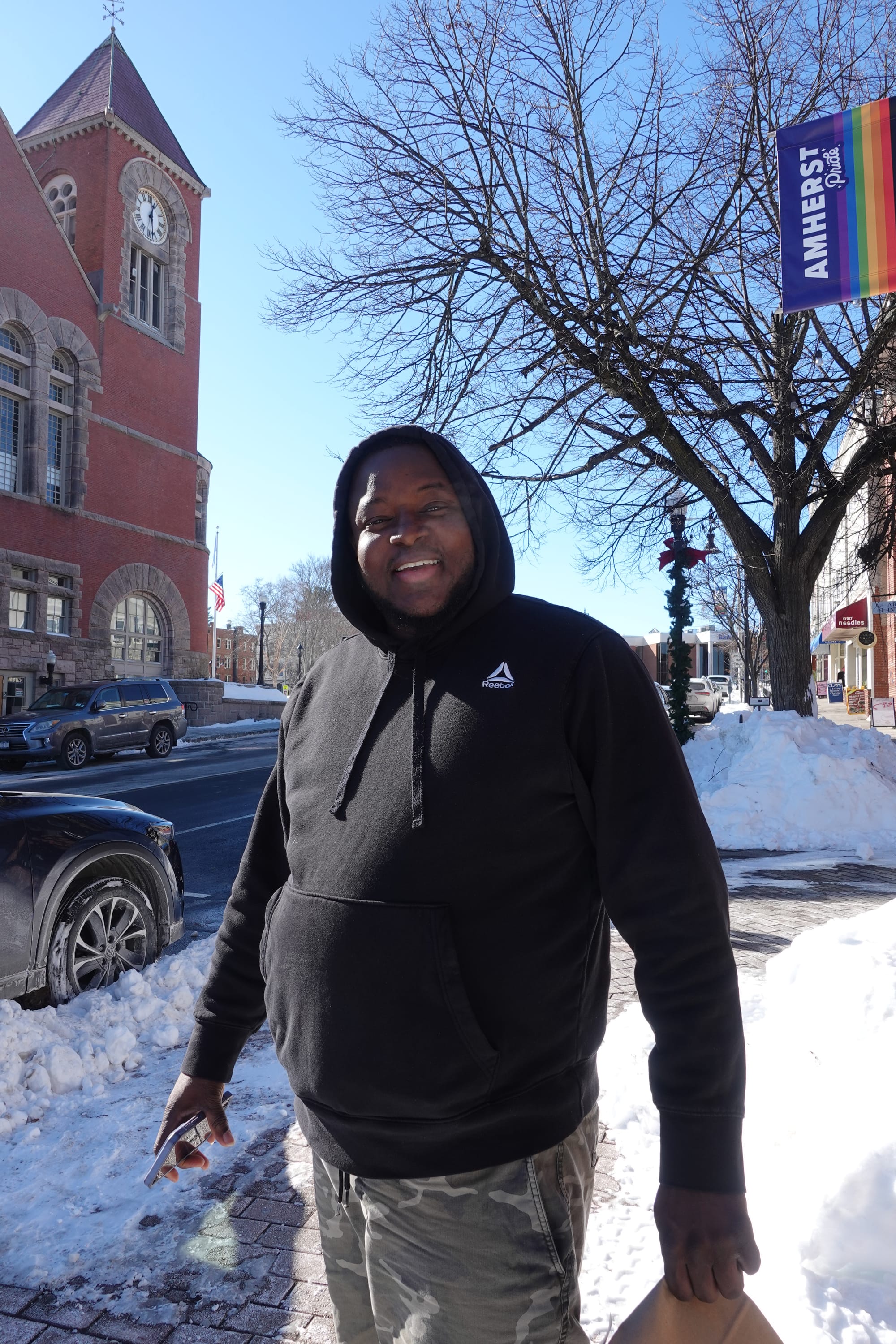 It’s zero degrees on a Saturday morning. I don’t know where the squirrels have gone. But there are people outside, so there must be something else that keeps humans warm. In the first installment of Humans of Amherst, I asked people around town what that might be for them.