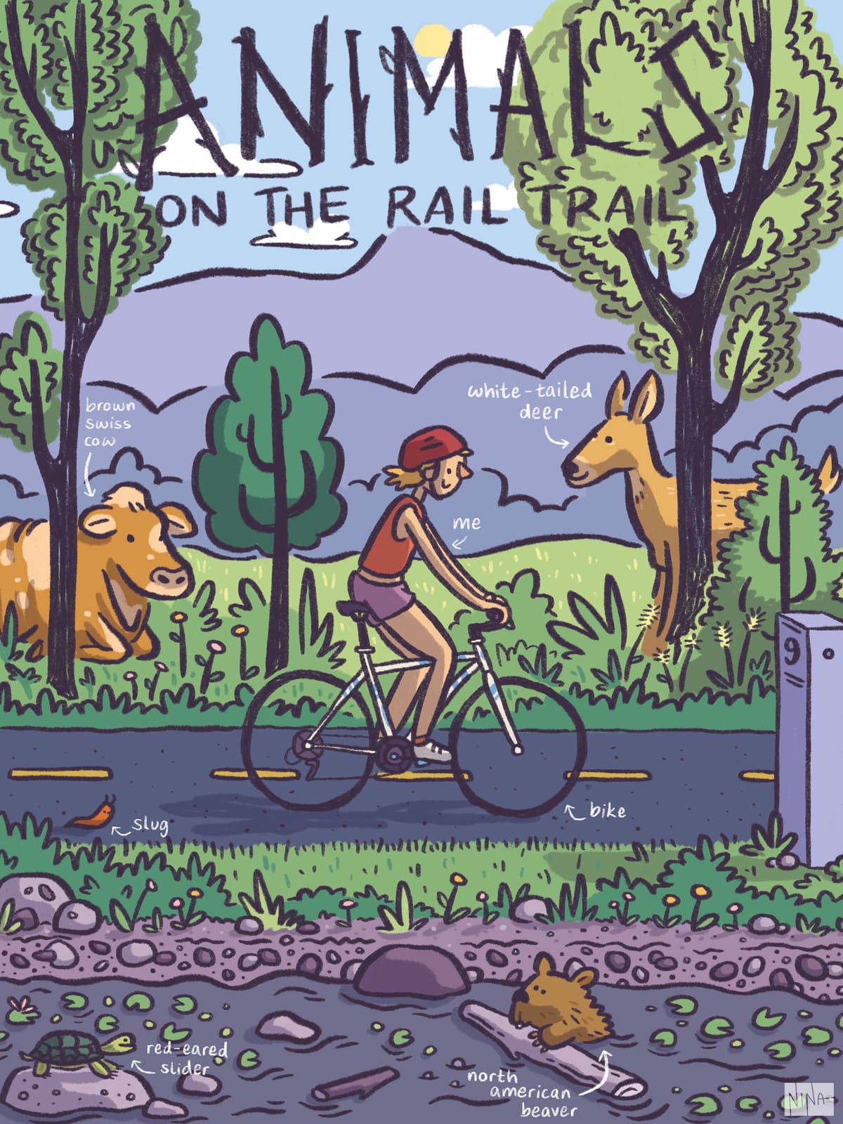 Nina Aagaard ’26 chronicles the various creatures she discovered on the rail trail over this past summer. Meet the four-legged (or non-legged) friends who call Amherst’s rail trail home.