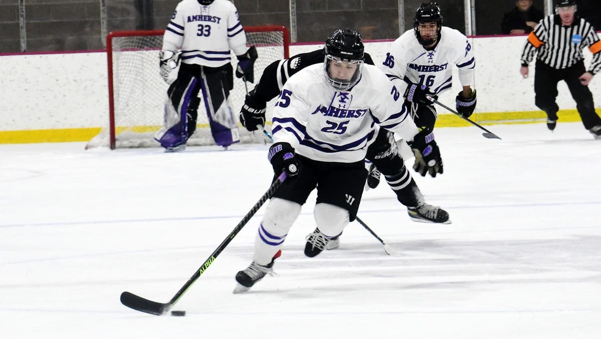 This past Saturday, the men’s ice hockey team ended their season in a loss to Hamilton College in the NESCAC tournament quarterfinal. The Continentals scored three unanswered goals in the first thirty minutes of the game, two scored off of power plays. Tyler Borque ’24 was able to get one back at the end of the second period, but by the beginning of the third Hamilton had reasserted their three goal lead. Over the last ten minutes however, the Mammoths outshot the Continentals 12-2. With their new found intensity they were able to score two goals within the ten minute time frame, but it was not enough as Hamilton will move on to the semifinal after their 4-3 win.