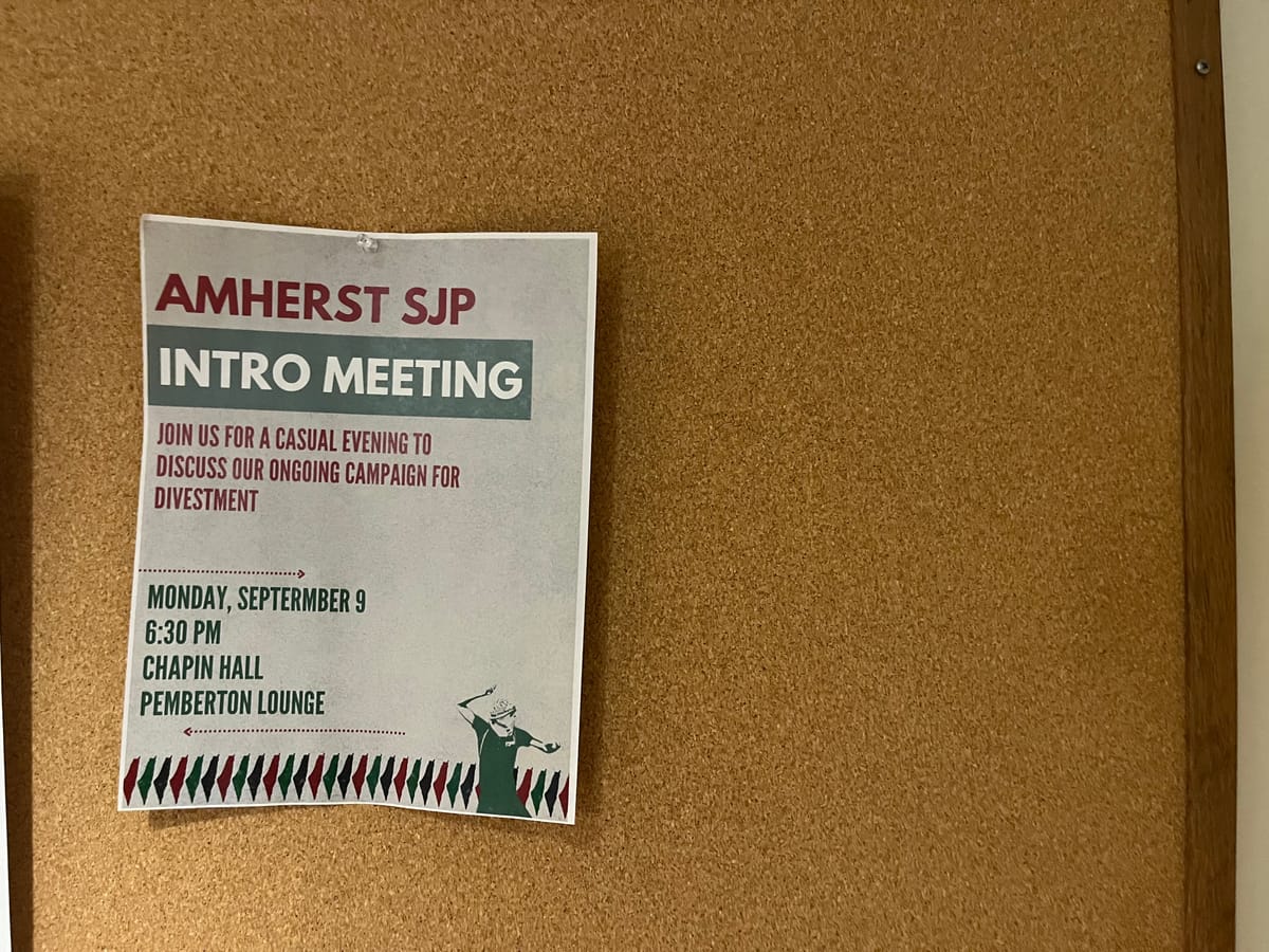 “That said, the administrative decision to revisit the protest policy in the wake of the pro-Palestine student uprisings last spring tells us that the college is wary of pro-Palestine protests disturbing college operations,” they said, “We are taking this opportunity at the beginning of a new academic year to double down in our commitment to ensure that business as usual cannot continue until Amherst divests from Israeli genocide and apartheid.”