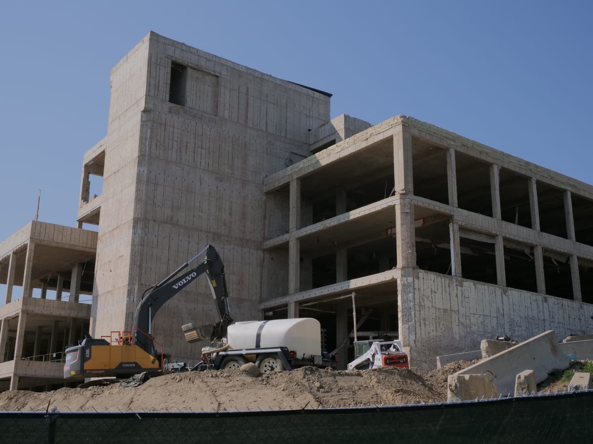 A major challenge in the Student Center project was the asbestos discovered in the old science center. Due to the volume of asbestos in the building and the required work, the site was left empty for a while prior to this summer’s long-awaited demolition.