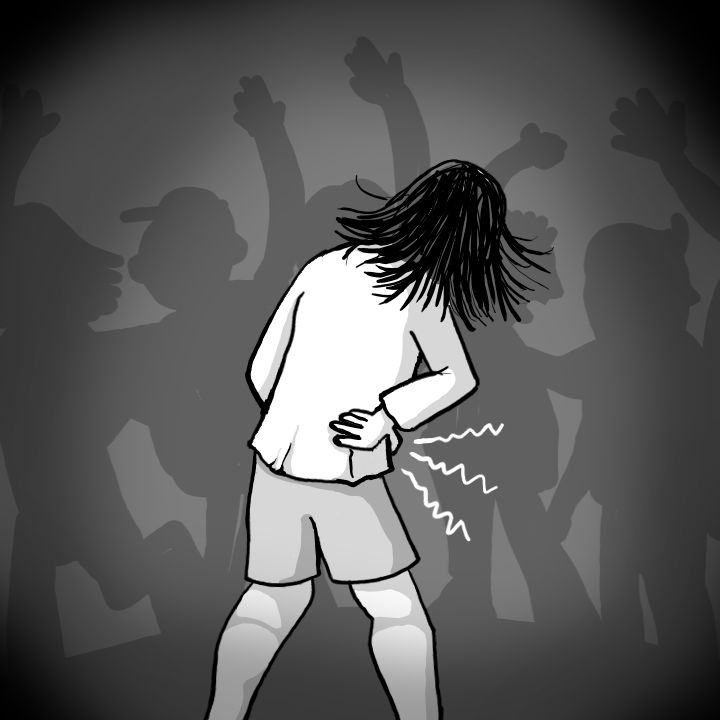The other night I was doing one of my favorite things, dancing, or just flailing around really. I was flailing around to my friend’s band in the middle of the flail floor and I was incurring all the typical liabilities: sweat on the brow, further dampness along the curve of the spine. Shortness of breath. My soles ached from stamping. All this I was prepared to endure, but suddenly I took on a wound that was unexpected and acute: A stitch in my side. Just as the wacky waving inflatable tube man might be caught in a frost, so too was my motion halted. Flagging to the periphery, I held my hands at my knees. I wondered how I could be so bent out of shape as to sustain a stitch through flailing, and I remembered that I had gained 70 or so pounds.