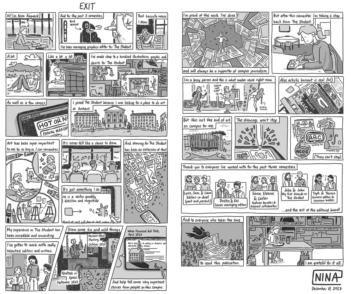 As she steps down from her position as Managing Graphics Editor, Nina Aagaard '26 doodles about the meaning and community she has found within the newsroom.