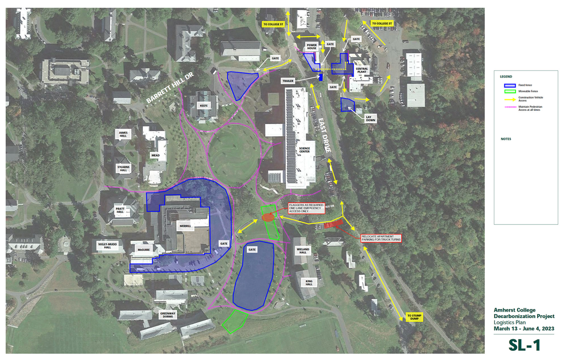 Amherst has contracted Finegold Alexander Architects to identify code and accessibility issues with specific buildings, and the replacement of the steam and hot water systems for 26 buildings along with a design for the campus Energy Center which will be a “low-embodied carbon structure” that has a green roof and will be constructed using heavy timber. This construction is projected to be completed by 2030.