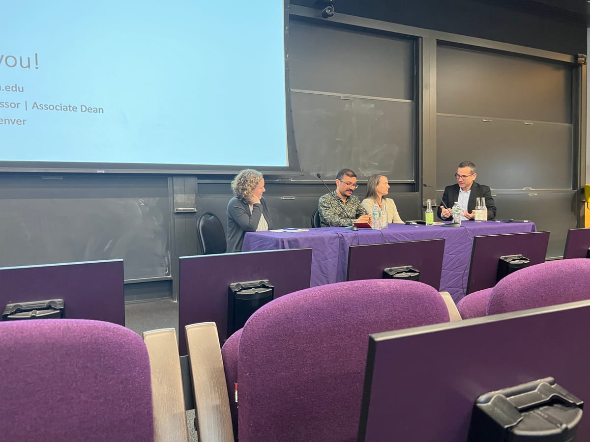 Olsen, who spoke next, is an associate professor and associate dean at the University of Denver’s Daniels College of Business and Josef Korbel School of International Studies. Her research and fieldwork on business ethics and economic development examines under what circumstances victims take measures to seek redress for corporate human rights abuses, including her compiling of over 13,000 corporate human rights abuses across Latin America.