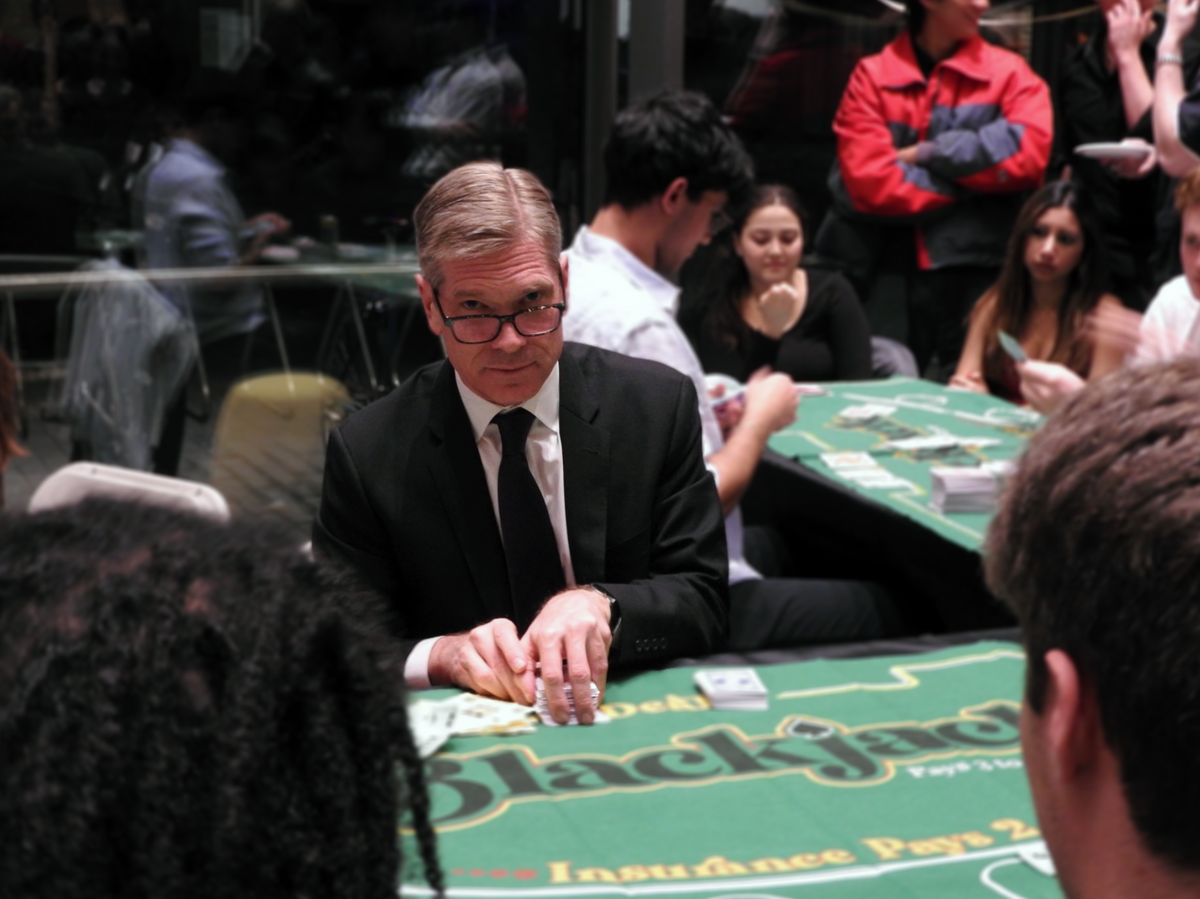 On April 12, the Amherst College Campus Activities Board (CAB) and the Association of Amherst Students (AAS) held a highly-attended Casino Night in the Science Center. The event allowed students to swipe in with their Amherst ID and receive Mammoth Bucks to buy into games with the hopes of multiplying their winnings. Games available across the Science Center’s main floor lounge included poker, roulette, bingo, and even a blackjack table dealt by none other than President Michael Elliott. Stakes were high as students sought to trade in Mammoth Bucks for raffle tickets to put towards prizes. At the end of the night, some Mammoths emerged victorious amidst the crowd, winning prizes ranging from Amherst merchandise and gift cards to a mountain bike and a Roku TV. Whether winners or losers in the end, members of the Amherst community showed out en masse for one of the most exciting nights of the semester so far.