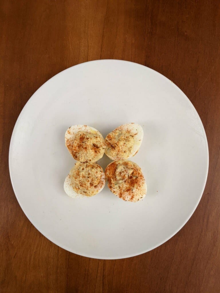 Recipe makes 4 deviled eggs. All ratios are approximate and to taste.