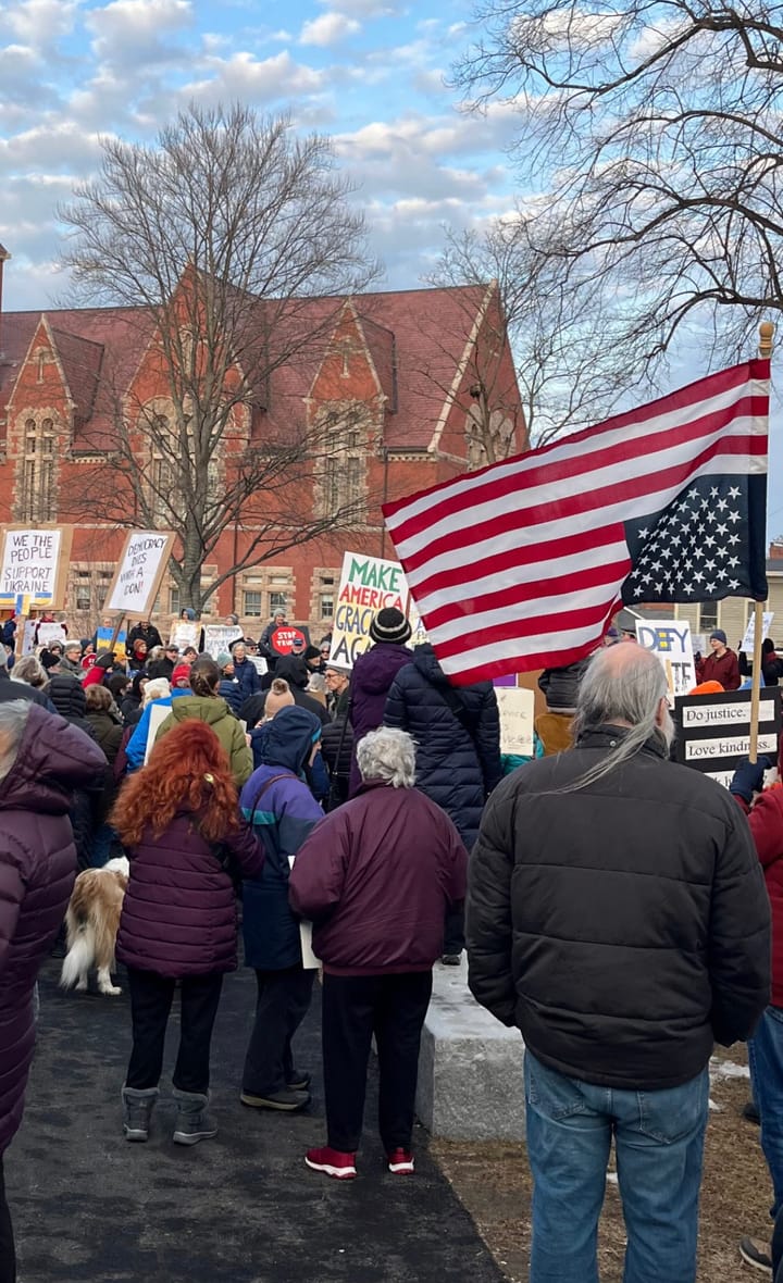 Town Residents Pack Common to Protest Trump On the afternoon of President Donald Trump’s address to Congress last week, town residents rallied against the administration’s foreign policy actions and termination of federal employees.